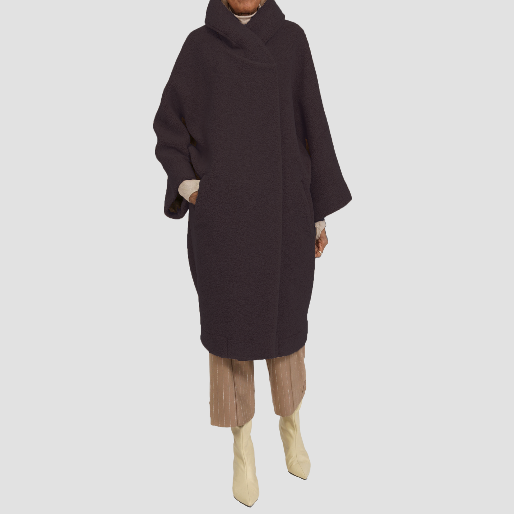 Welt pockets. Cocoon shape.